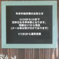 年末年始休業のお知らせ年末年始休業のお知らせ12/28から1/6まで定休日&冬季休業となります。物販は1/7から発送(メール等は受け付けております)1/7...
