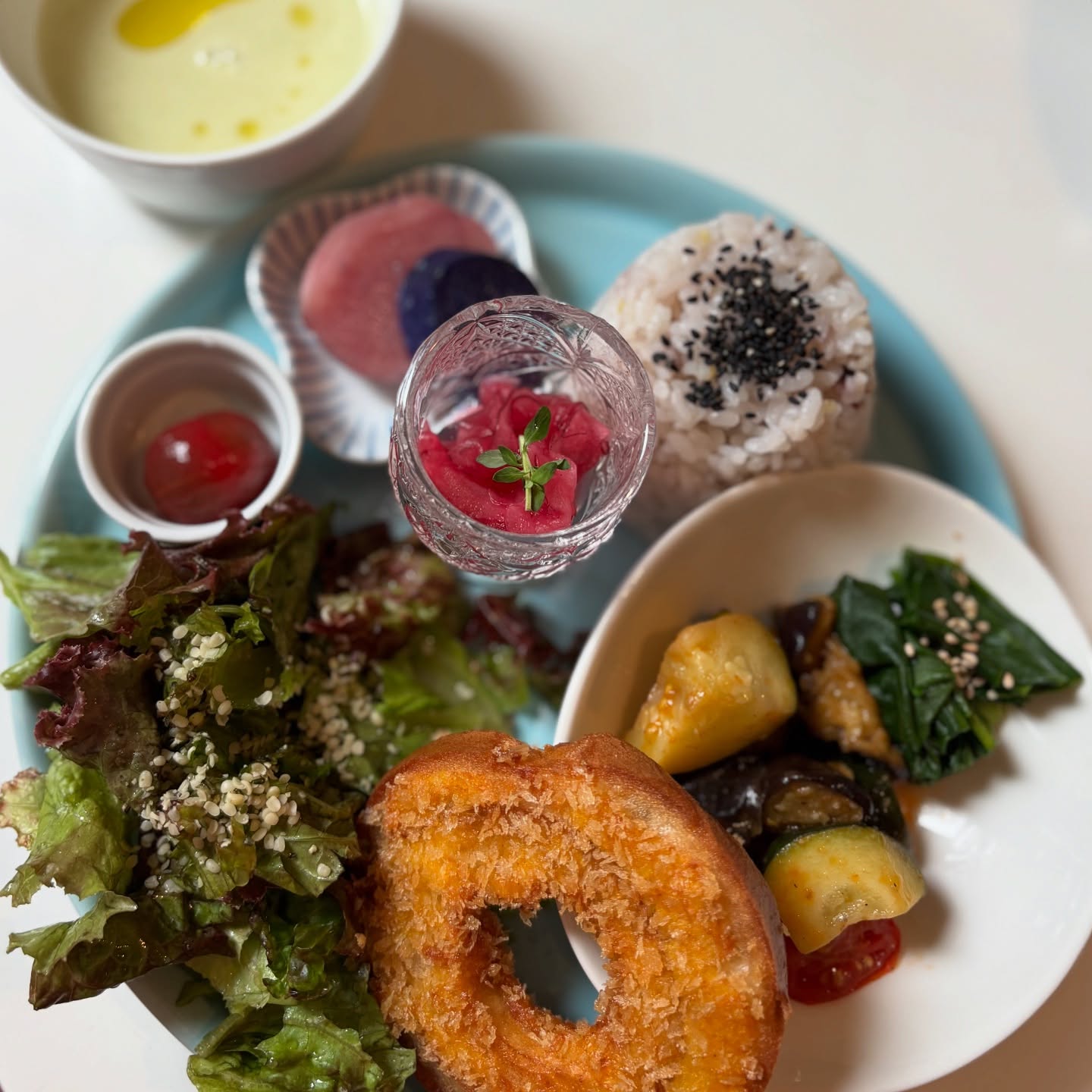 🥢今週のプレートメインはカレー麹の車麩フライ自家製のカレー麹を衣に絡ませてサクッと揚げた車麩。暑い夏は消化機能も弱まり、胃腸がなんだかすっきりしない。水分もビタミンやミネラルも不足しがち。食事の中で旬の野菜、酢の物やスパイスを積極的にとりいれたいですね。赤玉ねぎの梅酢漬けは絶品に仕上がりました。今週もよろしくお願い致します