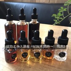 毎月1回。植物エキスって何?よくわからないという方が多かったので初めての方向けに「植物エキスとは」から様々なハーブから抽出された植物エキスを体験していただくワークショップを企画しました。